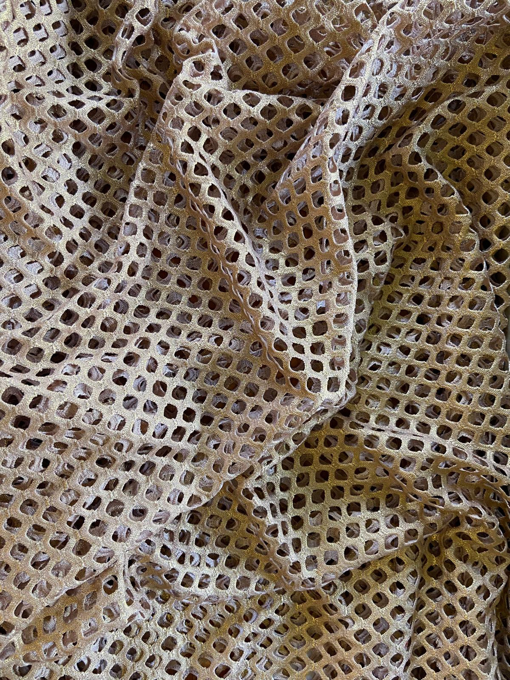 Stretch large hole fishnet fabric with metallic sheen. We manufacture body stockings for dance and have a wide range of...